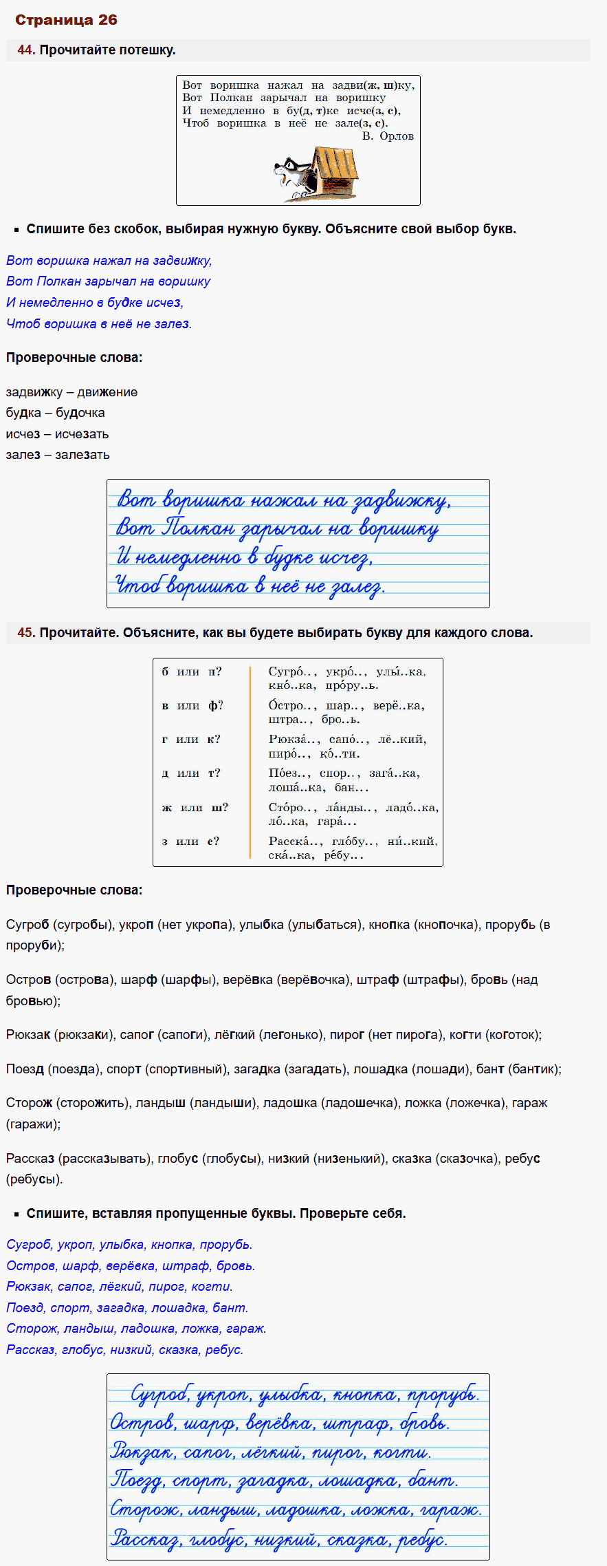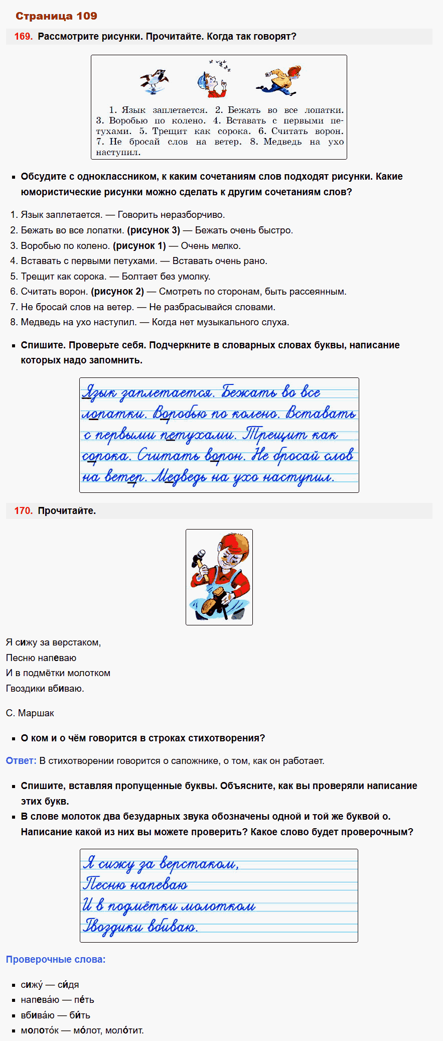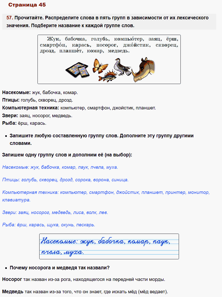 - Описание: Если ваш ребенок занимается по этому учебнику, ему несомненно повезло. Даже самые сложные темы родного языка, представлены здесь под таким ракурсом, что столь непростые правила предмета усваиваются намного легче. Для проверки заданий в рабочей тетради Учусь писать без ошибок по Русскому языку используйте специально созданный сборник ГДЗ для учеников 2-го класса авторов Канакина, Горецкий. В режиме онлайн, без регистрации и смс, вы можете смотреть фото ответы решебника и сравнивать или оценивать работу своего ребенка.