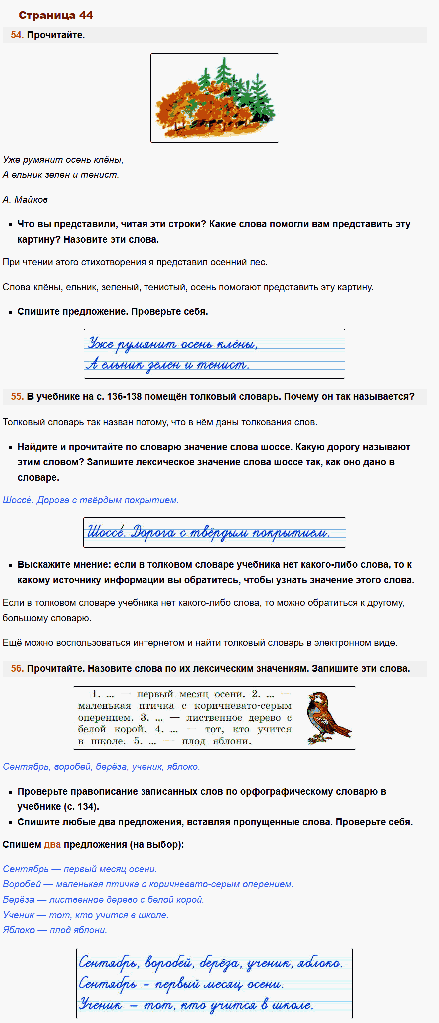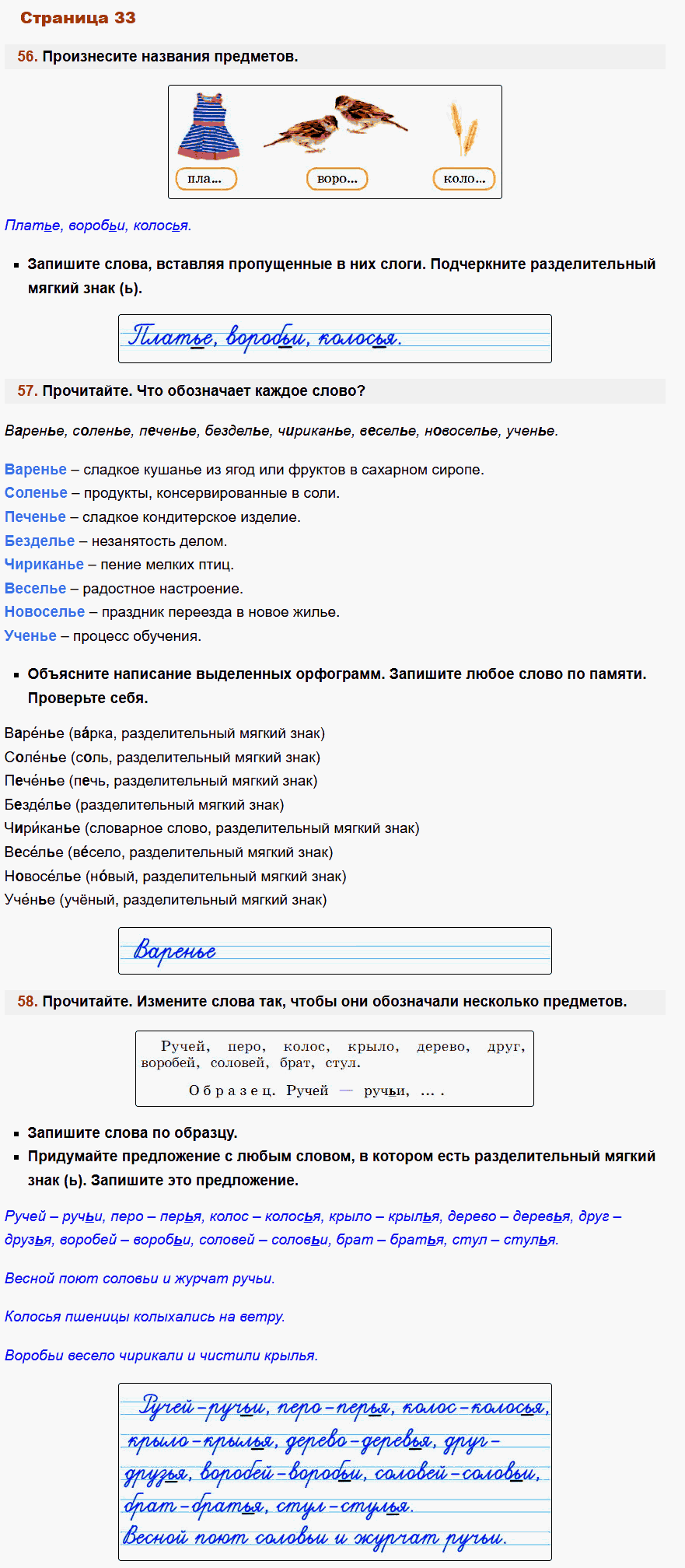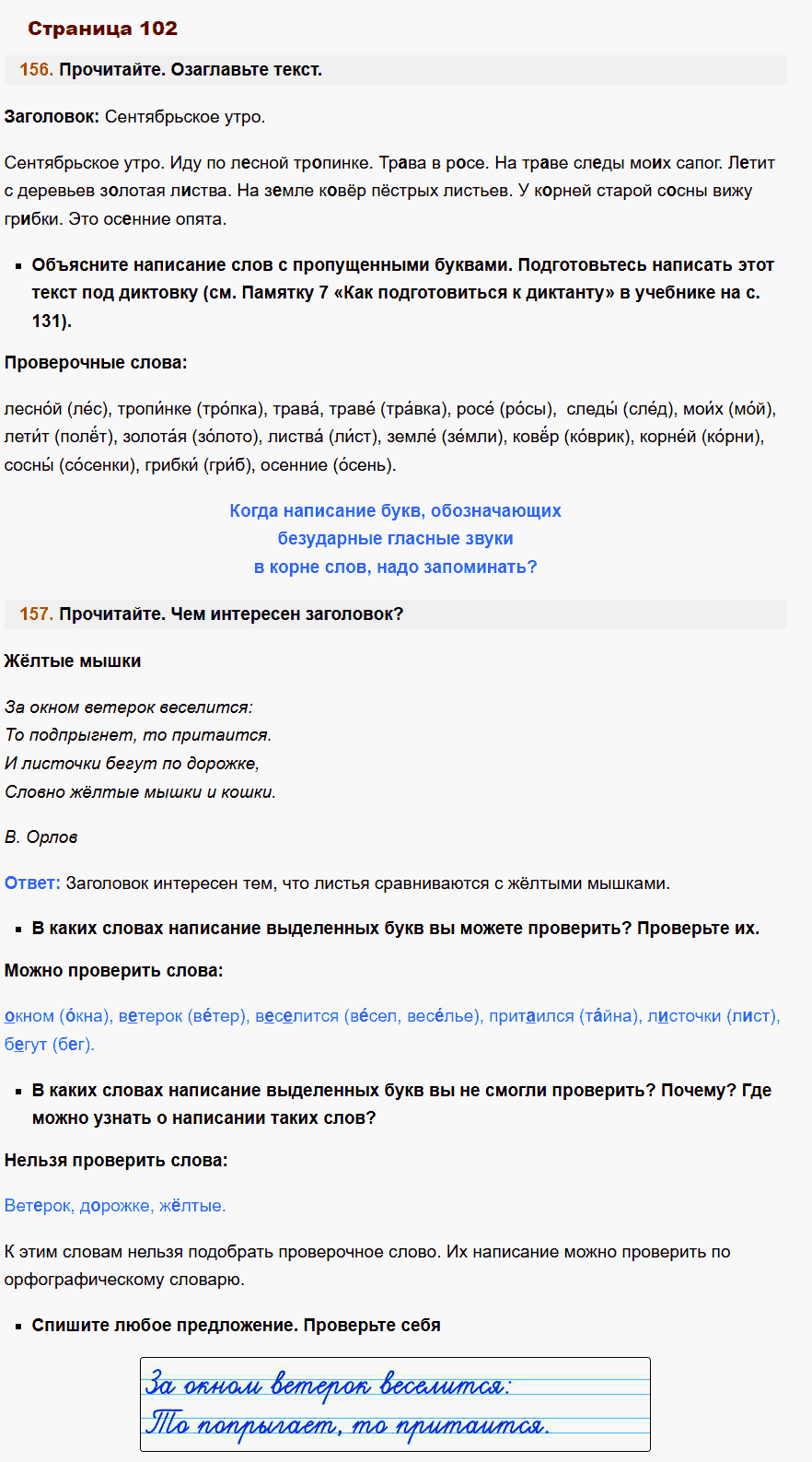 - Описание: Если ваш ребенок занимается по этому учебнику, ему несомненно повезло. Даже самые сложные темы родного языка, представлены здесь под таким ракурсом, что столь непростые правила предмета усваиваются намного легче. Для проверки заданий в рабочей тетради Учусь писать без ошибок по Русскому языку используйте специально созданный сборник ГДЗ для учеников 2-го класса авторов Канакина, Горецкий. В режиме онлайн, без регистрации и смс, вы можете смотреть фото ответы решебника и сравнивать или оценивать работу своего ребенка.